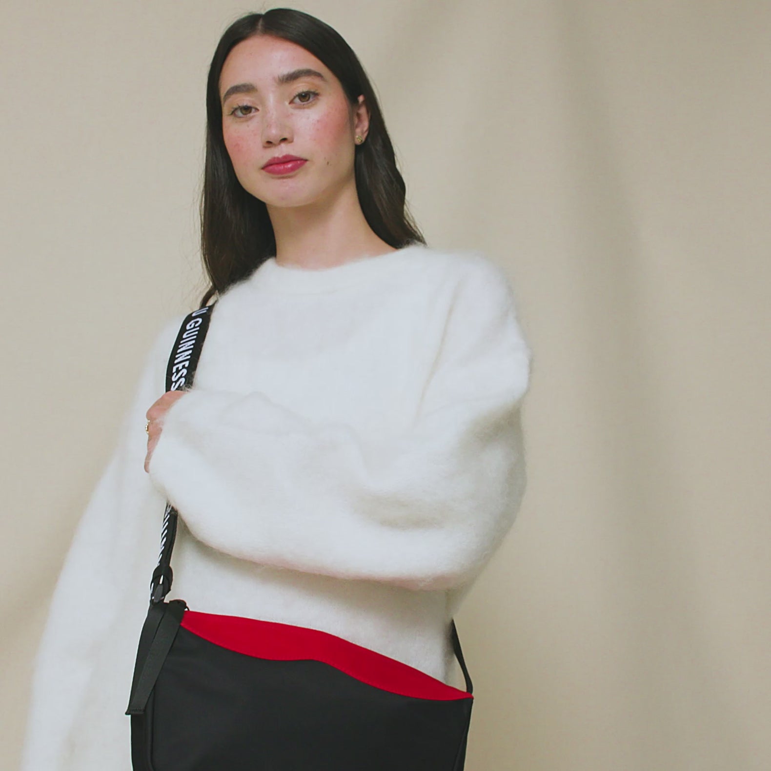 Add a signature playful spin to your casual wardrobe with Lulu's 'Pucker Up!' Bag with logo strap. Crafted from recycled Nylon in Black, this soft pouch features a graphic Lulu Red lip design and stylish matt black zip. Adjust the strap to carry either on the shoulder or crossbody.