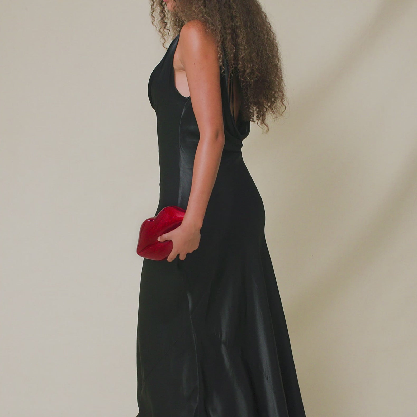 Own a glamorous icon with the acrylic Lips Clutch with a fine glitter Lulu Red finish. This statement party piece comes with a detachable gold chain strap to carry crossbody. This glossy, pop-art inspired evening bag features a magnetic closure, internal slip pocket and. shiny gold hardware.